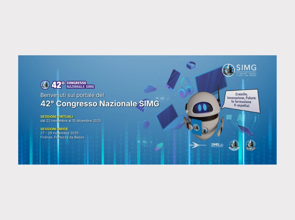 Il 42° Congresso Nazionale SIMG rappresenta il principale appuntamento annuale dedicato alla medicina generale in Italia, un punto di incontro tra formazione, innovazione e confronto professionale. L’edizione 2025 si articolerà in tre momenti complementari — sessioni live virtuali (22-23 novembre), sessioni ibride (27-29 novembre, Firenze - Fortezza da Basso) e webinar di approfondimento “Focus On” (2-15 dicembre) — per offrire un’esperienza formativa ampia, accessibile e dinamica.